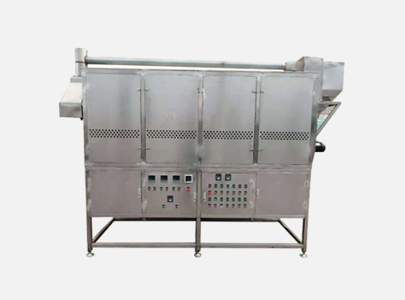 將板栗送入碳化爐中,在高溫狀態(tài)下,經(jīng)1000度高溫碳化,再經(jīng)螺旋推進(jìn)器送入搓皮機(jī)進(jìn)行殼、仁分離。每小時(shí)可碳化加工燕山山脈板栗550公斤左右 規(guī)格: 長3.7米 寬1.1米 高2.45米